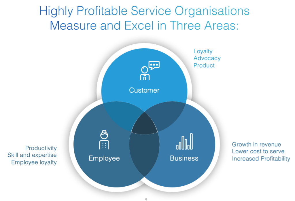 คำถามถัดมาก็คือ ทำอย่างไรพนักงานถึงจะทำอย่างอย่างมีผลิตภาพ (Productivity) ซึ่งก็จะหนีไม่พ้นการที่พนักงานมีความภักดีต่อองค์กร เนื่องจากในธุรกิจบริการนั้นต้นทุนแฝงที่มีอยู่โดยเราไม่รู้ตัวคือการลาออกของพนักงานครับ เนื่องจากเมื่อพนักงานเก่าที่มีความชำนาญและเชี่ยวชาญลาออกแล้ว ก็จะทำให้ผลิตภาพในการทำงาน และความพอใจของลูกค้าพลอยลดลงไปด้วย ท่านผู้อ่านลองนึกแล้วกันครับว่าถ้าพนักงานบริการลูกค้าที่มีประสบการณ์ห้าปีขึ้นไปลาออกแล้วเราหาคนใหม่ที่มีประสบการณ์ไม่ถึงปีมาทำงานบริการลูกค้า จะส่งผลกระทบต่อผลิตภาพและความพอใจของลูกค้าอย่างไร