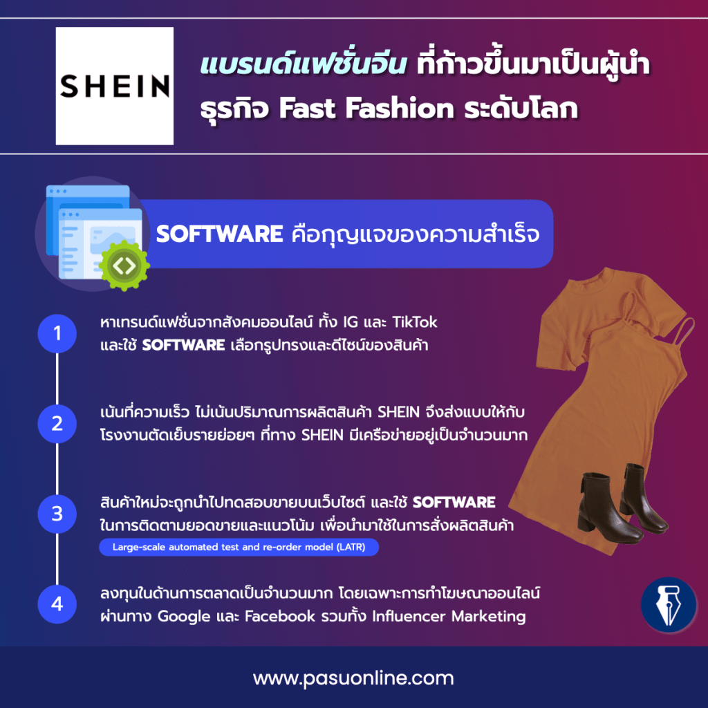 ถ้านึกถึงบริษัทชั้นนำในธุรกิจ Fast Fashion ของโลก ชื่อที่จะนึกถึงก็จะหนีไม่พ้น H&M หรือ Zara หรือ Uniqlo คงมีคนไม่มากที่นึกถึง Shein จากประเทศจีน หรือ เชื่อว่าสำหรับผู้ที่อายุเกิน 35 ปีขึ้นไป คงจะมีจำนวนไม่เยอะที่รู้จัก Shein