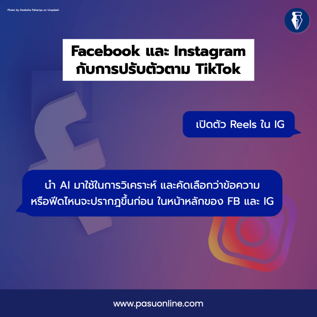 ในสองสัปดาห์ที่ผ่านมา มีข่าวการปรับรูปแบบและรายละเอียดของ Facebook (FB) และ Instagram (IG) มาอย่างต่อเนื่อง สำนักข่าวทุกแห่งก็ระบุว่าการปรับตัวของแอปชื่อดังภายใต้บริษัทแม่อย่าง Meta นั้น หลักๆ คือเพื่อตอบสนองต่อการเข้ามาครองตลาดวัยรุ่นของ TikTok
