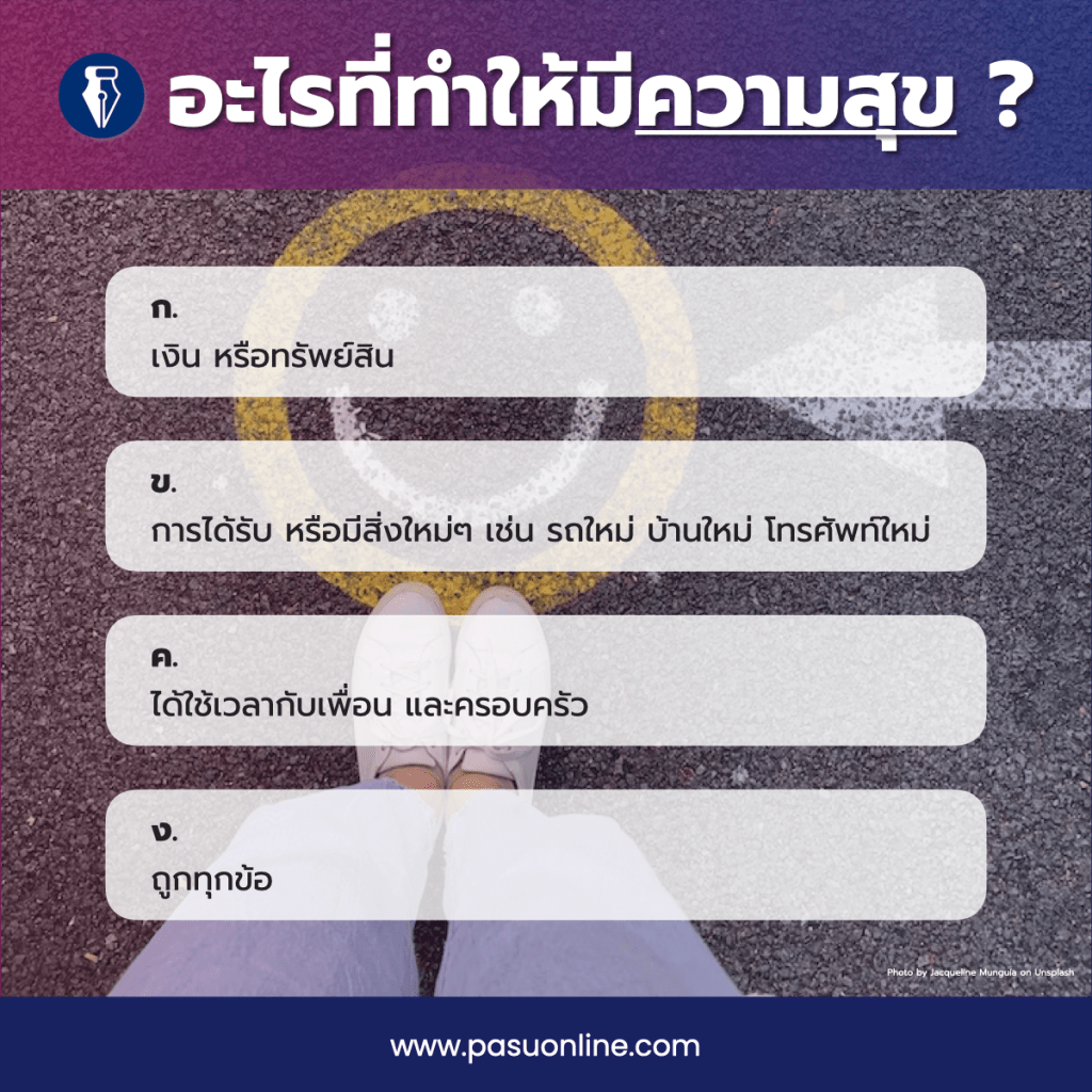 ถึงแม้เป้าหมายของคนจำนวนมากคือชีวิตที่มีสุข แต่คำถามสำคัญคือความสุขคือสิ่งใด? และความสุขมาจากไหน?