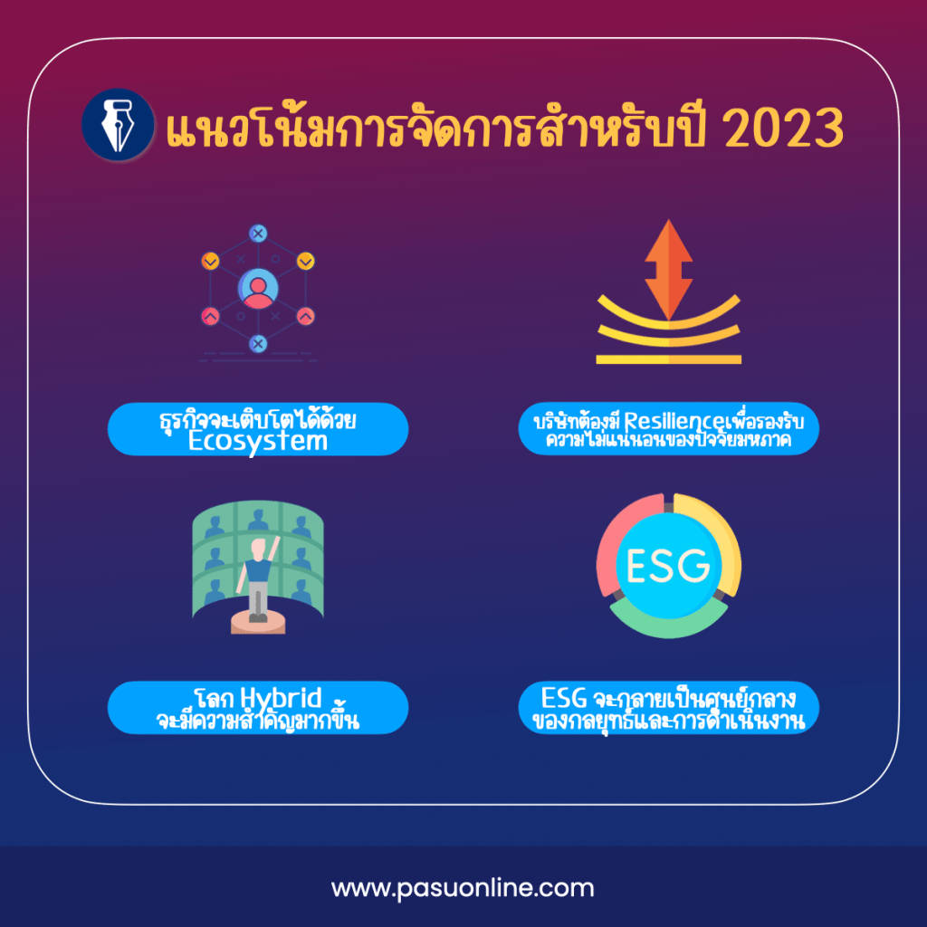 แนวโน้มหรือ Trend ด้านการจัดการของปีใหม่นั้น ก็เป็นสิ่งที่สืบเนื่องมาจากปีก่อน หรือเป็นไปเพื่อปรับตัวให้เข้ากับปัจจัยในเชิงมหภาคที่เปลี่ยนไป
