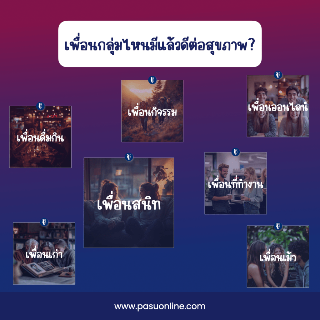 เป็นที่ทราบกันว่าหนึ่งในปัจจัยที่ส่งผลต่อสุขภาพของคนการมีสังคมและเพื่อนฝูงที่ได้มีโอกาสพบเจอเป็นประจำ การได้เข้าสังคมและมีเพื่อนจะส่งผลดีต่อทั้งสุขภาพกายและใจ อย่างไรก็ดีพบว่าประเภทของเพื่อนก็ส่งผลต่อสุขภาพด้วยเช่นเดียวกัน