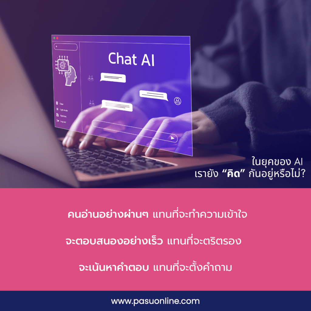 นอกจากสิ่งเร้าหรือสิ่งรบกวนที่เข้ามาตลอดเวลาแล้ว การใช้ AI โดยเฉพาะ Gen AI ตลอดเวลาและต่อเนื่อง ก็ส่งผลต่อความสามารถในการคิดของคนเช่นกัน จริงอยู่ที่ AI ทำให้การคิดง่ายและเร็วขึ้น แต่ก็นำไปสู่คำถามว่าจริงๆ แล้ว AI ทำให้คนคิดดีขึ้น หรือ กลายเป็นเครื่องที่ช่วยให้คนไม่ต้องคิด? ยิ่ง AI มีพัฒนาการมากขึ้นเท่าใด AI ยิ่งกลายเป็นเครื่องมือที่ไม่สามารถขาดได้ และกลายเป็นเครื่องมือที่ช่วยให้คนได้รับคำตอบที่สำเร็จรูป แต่อาจจะขาดความเข้าใจ โดยเฉพาะอย่างยิ่งผู้ที่นำสิ่งที่ได้จาก AI ไปใช้เลยโดยไม่กลั่นกรองหรืออ่านซ้ำหรือทบทวน จะยิ่งถ่ายโอนกระบวนการในการคิดไปให้ AI ทำแทน