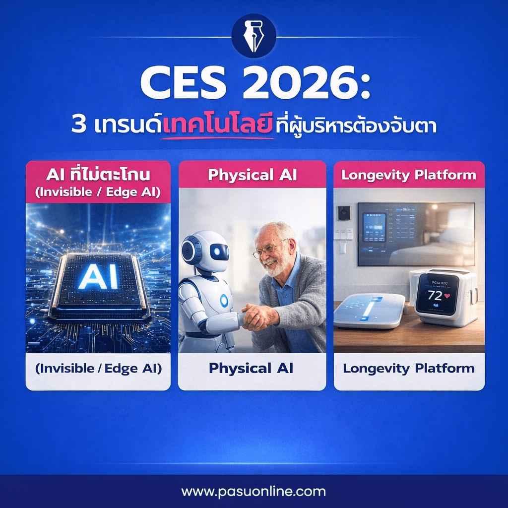 เมื่อต้นเดือนมกราคม มีงาน CES 2026 ที่เป็นเสมือนงานเปิดตัวเทคโนโลยีและเทรนด์ที่น่าสนใจสำหรับปีนี้ มีหลายบทความและหลายคลิปที่พาไปชมและเล่าถึงสิ่งที่น่าสนใจของงานนี้ จึงขอรวบรวมเนื้อหาจากหลายๆ แหล่ง มาสรุปเป็น 3 เทรนด์ทางด้านเทคโนโลยีที่สำคัญจากงาน CES 2026 ซึ่งเป็นแนวโน้มทางด้านเทคโนโลยีสำหรับปีใหม่นี้